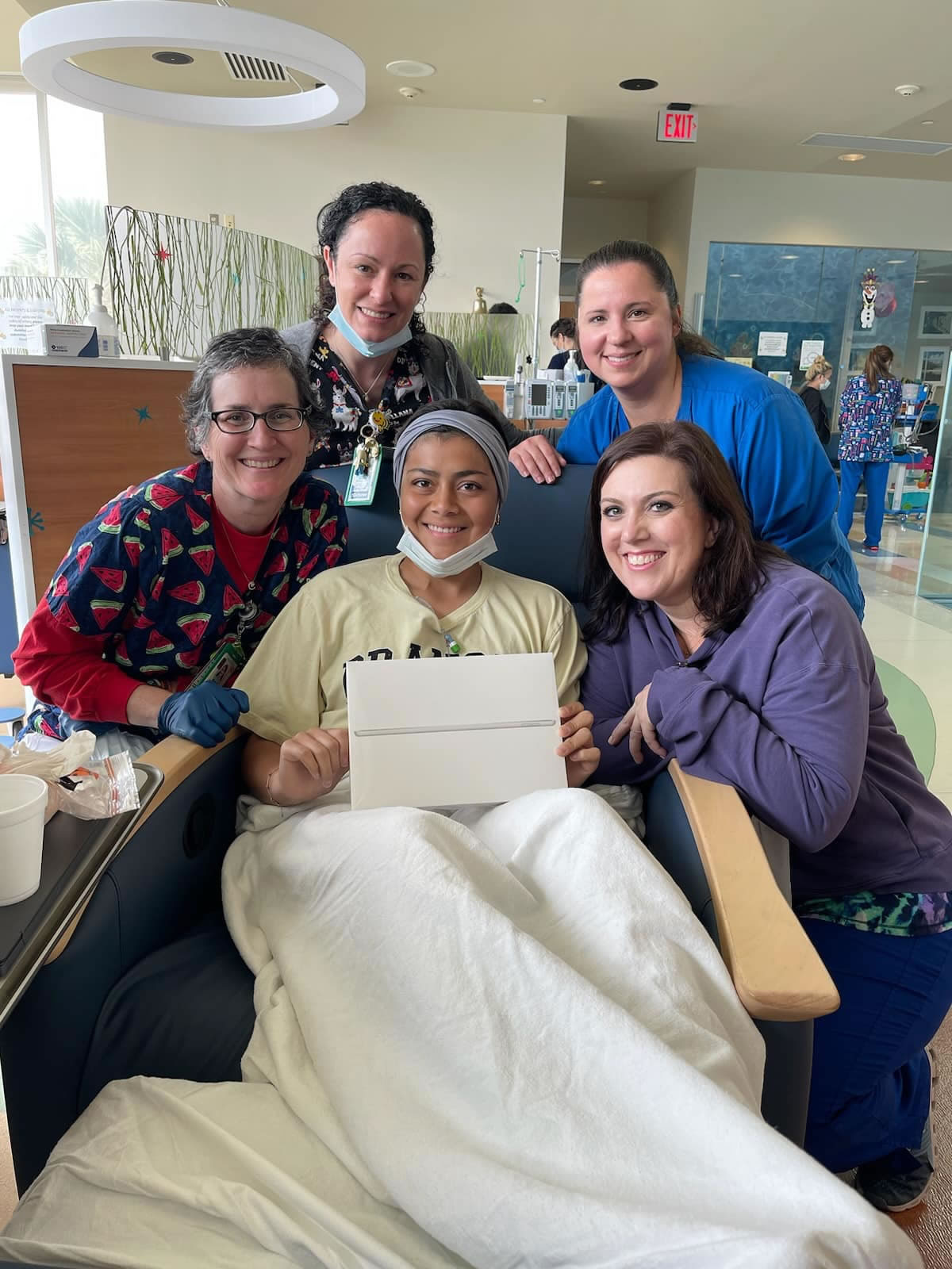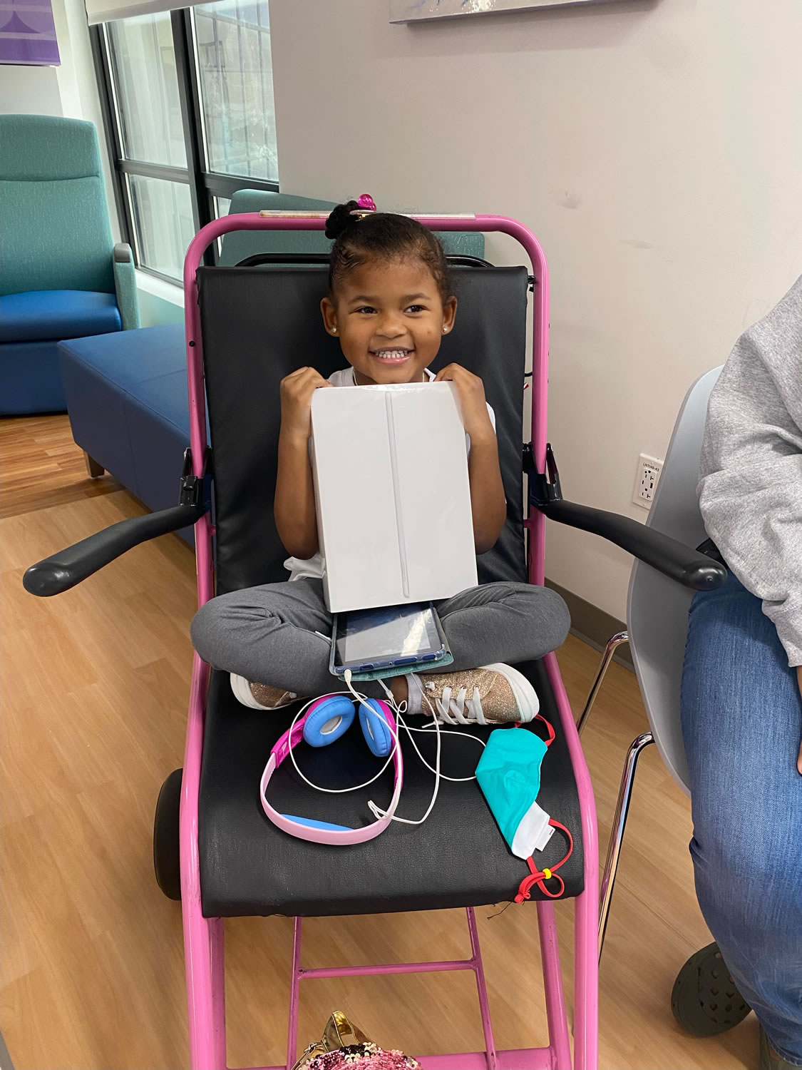 and classmates through the use of their iPads, along with helping to fight boredom during hospital stays and visits to the clinic.